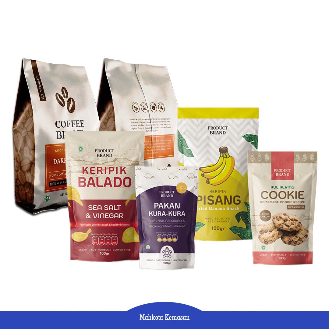 Mahkota Kemasan hadir sebagai solusi lengkap untuk pembuatan kemasan custom berbagai jenis produk seperti makanan, minuman, skincare, fashion, aksesoris, frozen food, coffee shop, bakery, dan lainnya. Kami menggunakan bahan premium dan mesin printing modern untuk menghasilkan tampilan kemasan yang elegan, kuat, dan awet.
